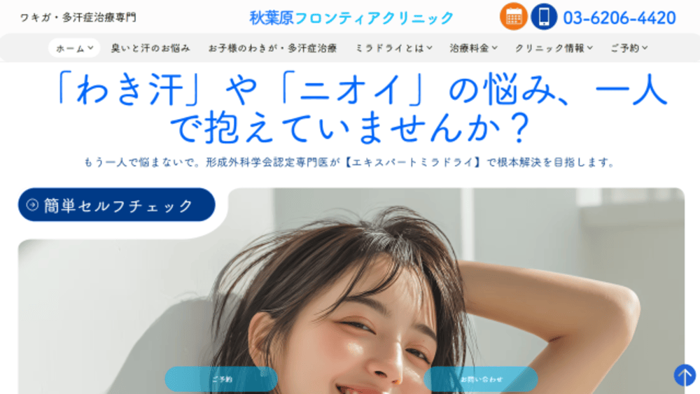 公式サイト:【公式】秋葉原のワキガ・多汗症治療|切らないミラドライ専門医 秋葉原フロンティアクリニック