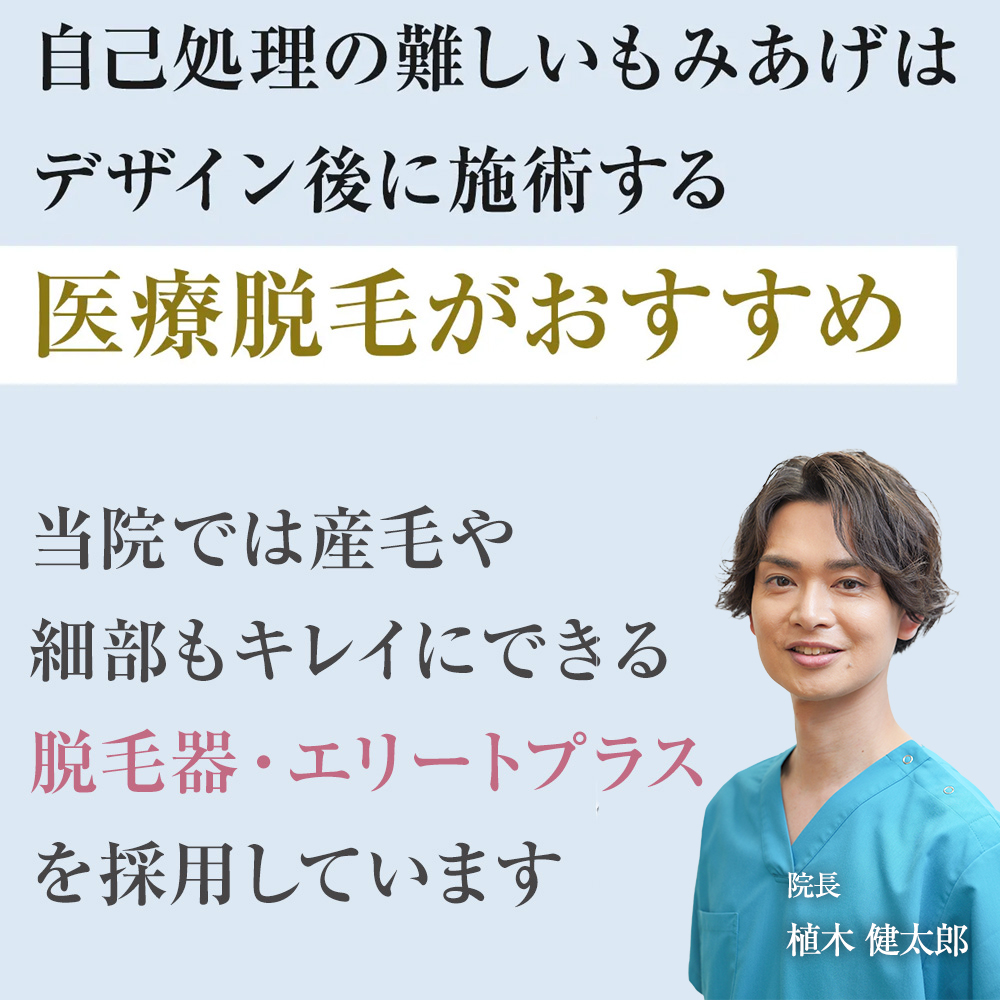 エリートプラス脱毛では、色素が濃いムダ毛だけではなく、産毛部分の色素が薄いムダ毛に対する脱毛効果が高いという特徴がありますので、思い通りのもみあげに仕上げることが可能です。